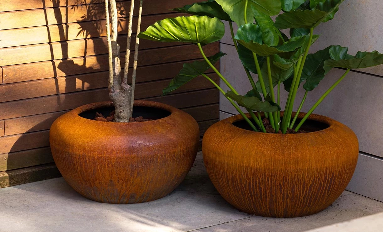 De cortenstalen plantenbak Onyx is ontworpen met ronde vormen die een zacht aanzicht creëren. Het cortenstaal, ook bekend als weervast staal, draagt bij aan de warmte van de bak. Door de natuurlijke roestlaag krijgt het cortenstaal zijn kenmerkende oranjebruine kleur, wat het geheel een prachtige uitstraling geeft. Bovendien zorgen weersomstandigheden ervoor dat het cortenstaal nog mooier wordt na verloop van tijd.