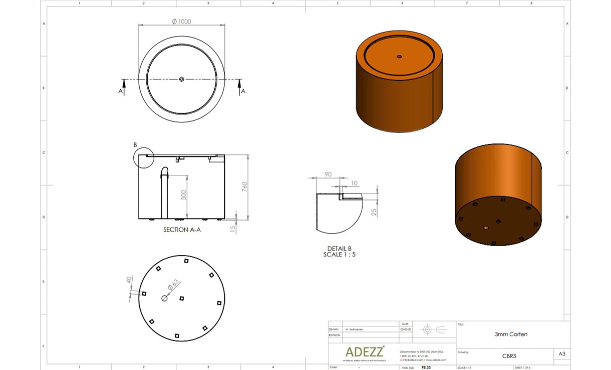 De ronde cortenstalen watertafel van Adezz is 100 centimeter breed en 75 centimeter hoog. De cortenstalen watertafel van Adezz heeft een warme en natuurlijke uitstraling door de roestbruine kleur. Deze ontstaat door een natuurlijk roestproces. De oxidelaag zorgt voor een fraaie kleur en beschermt het onderliggende metaal. Deze mooie ronde watertafel is een stijlvolle toevoeging voor in uw tuin!