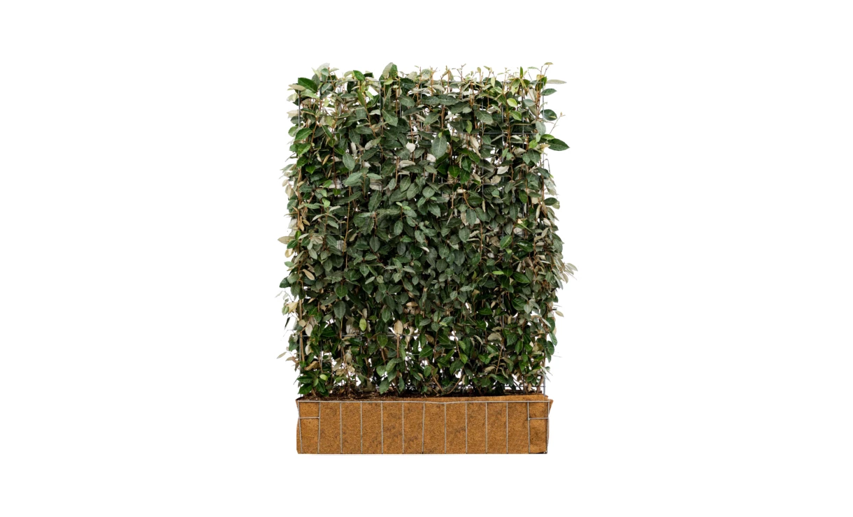 De Elaeagnus Ebbingei kant-en-klare haag is een haagelement van het merk Mobilane. De Elaeagnus Ebbingei, ook wel Olijfwilg of Zilverbes genoemd, is een groenblijvende haagplant. Met de kant-en-klaar haag olijfwilg van Mobilane geniet u het gehele jaar door van de mooie groen-grijze blad kleur. Nieuwe bladeren ontwikkelen zich eerst bronsachtig en kleuren later groen-grijs. In het voorjaar ontstaan er kleine, onopvallende bloempjes die later veranderen in oranje-rode besjes die eetbaar zijn.