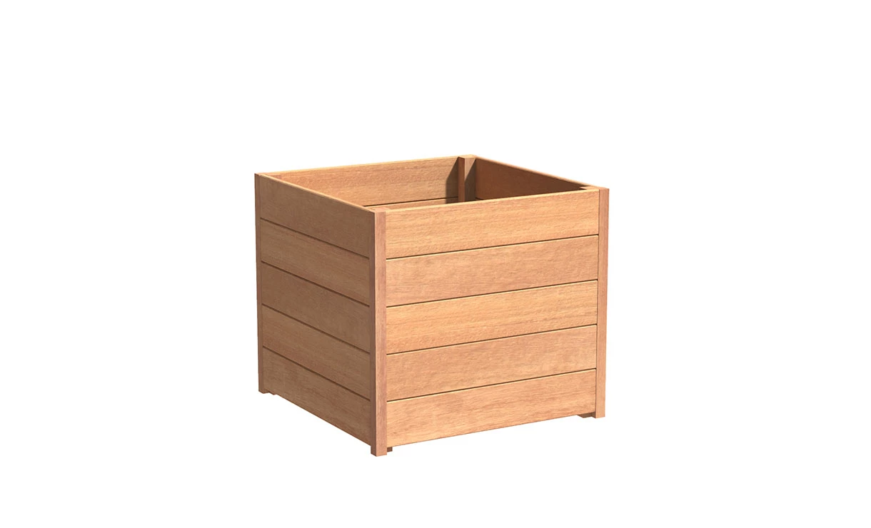De Carrez vierkant 80 x 80 x 71 cm is een duurzame, tropisch hardhouten plantenbak van Adezz op pootjes van 5 mm voor een goede afwatering. Een plantenbak met een warme en natuurlijke uitstraling. Verkijgbaar in verschillende soorten en maten.